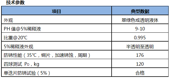 本產品系以環保型合成酯類水溶性冷卻型潤滑劑,不含任何氯離子添加劑。該產品與水混合后可形成超長使用壽命,性能穩定,潤滑顆粒分部均勻細膩的微乳化液。